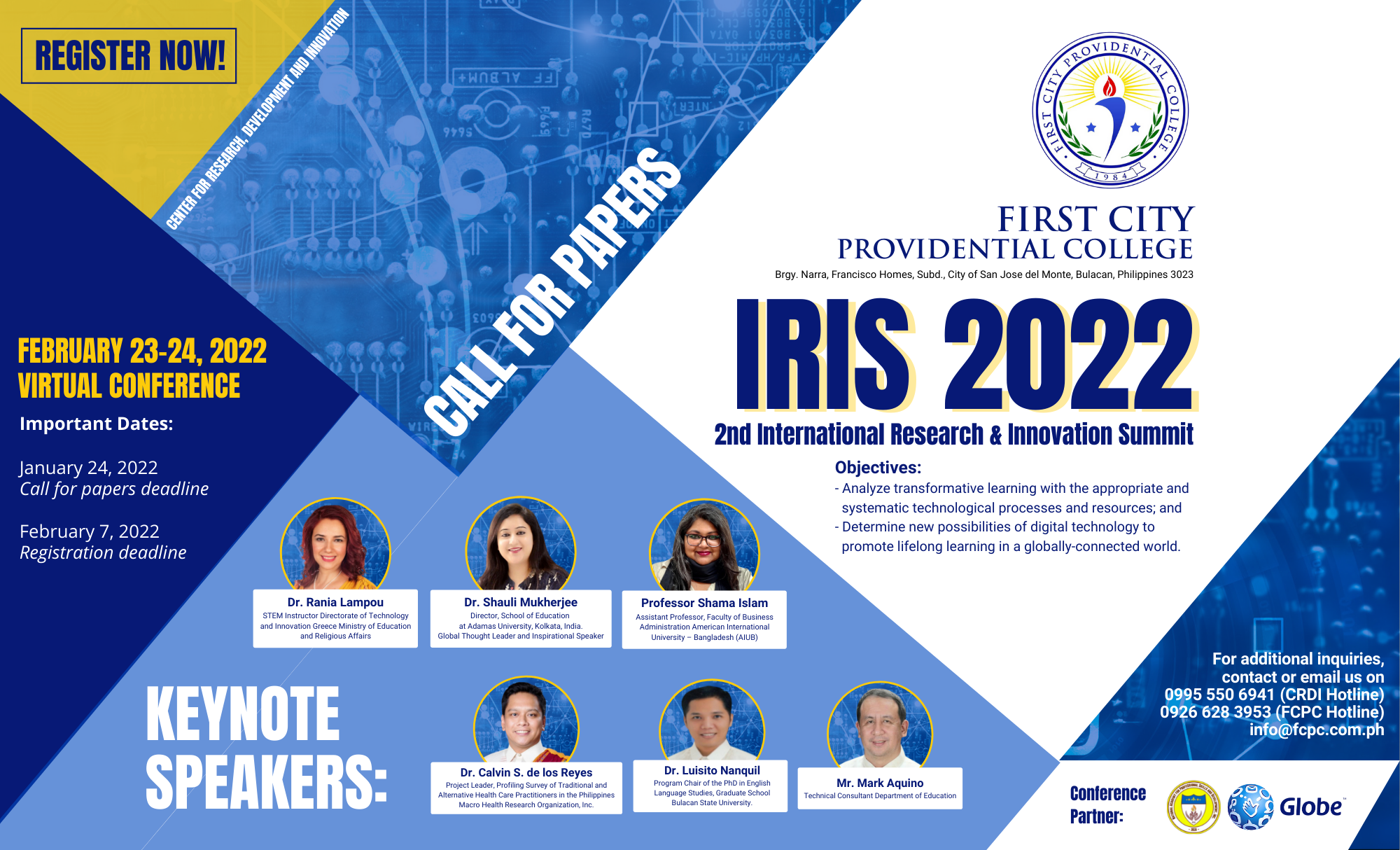 International Research and Innovation Summit 2022February 23-24, 2022First City Providential College (ONLINE)City of San Jose del Monte, Bulacan